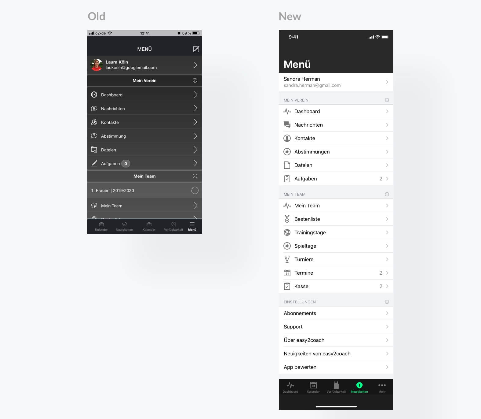 As a user of „easy2coach“, I am directly affected from its user experience because I need to open the app approx. every two days. That is why I decided to spend some time for a redesign in order to improve the overall look and feel but especially the UX.